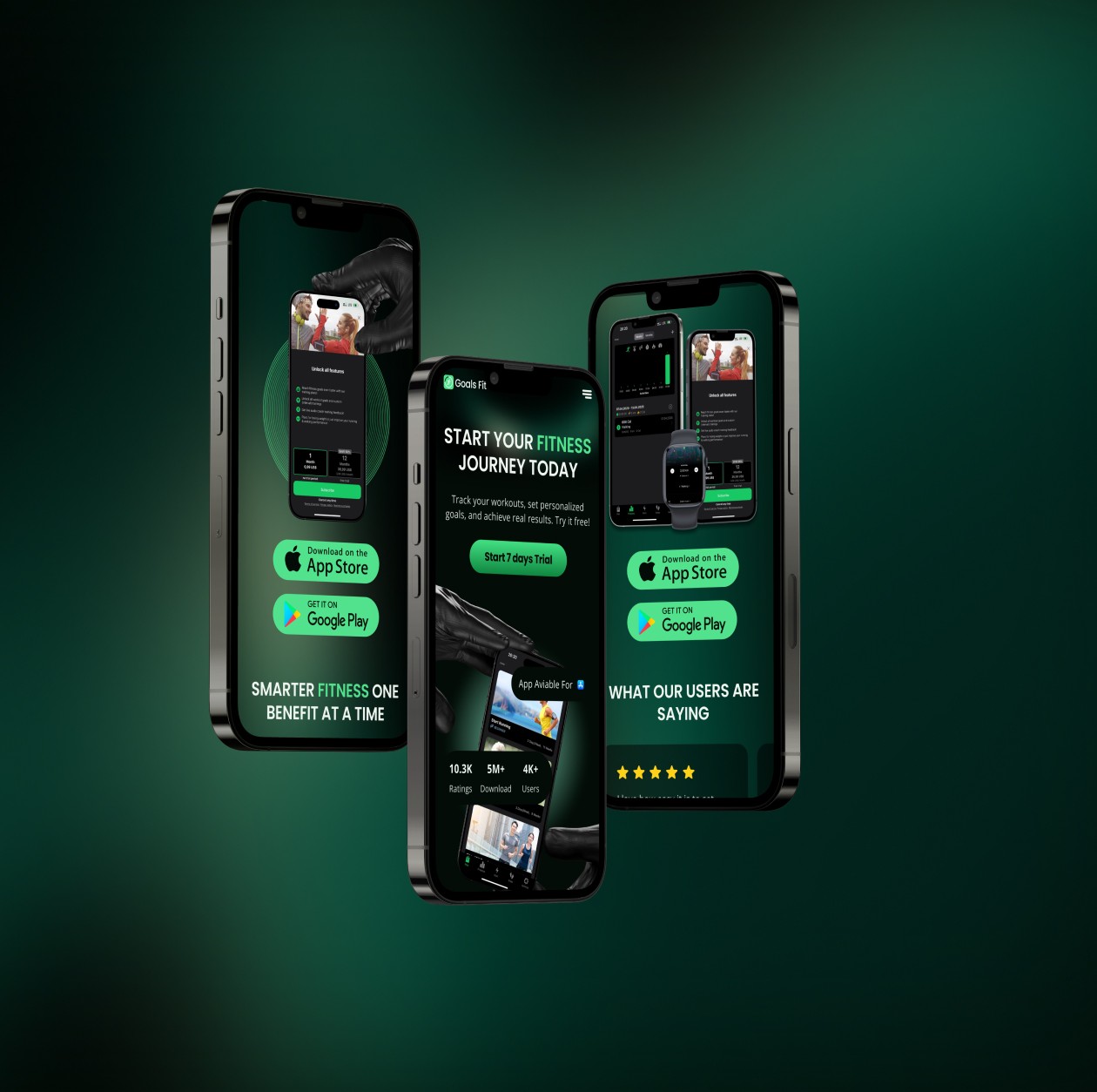 I designed a modern and engaging landing page for Goal Fit, a fitness app that helps users set, track, and achieve their workout goals. The design process focused on creating a clean and intuitive layout, a strong and consistent visual identity, and clear calls-to-action to encourage downloads and sign-ups. Using Figma, I developed a responsive structure and an interactive prototype to showcase the user journey. The final result communicates the app’s value in a simple yet impactful way, ensuring both usability and aesthetic appeal.